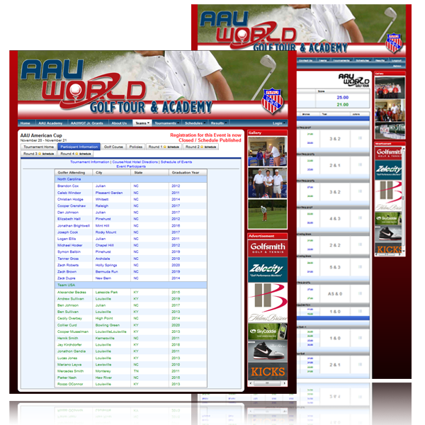 Not only does it deliver the individual match performance it also delivers real time team standings and points. Results are available to family and frinds and can be viewed in real time during the event. Once the event is over the information is retained and if points are awarded towards ranking they are presented in the points leader and ranking interface. Features like, point system scoring and ranking, ongoing history, and unlimited events, set D1Scout Golf Tour Management systems as the leader in golf event management.