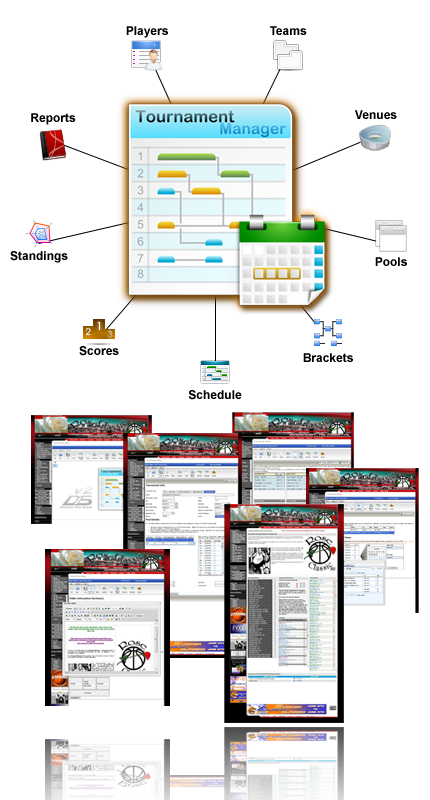 The customizable software handles the needs of virtually every type of event from full season play to single day showcase events.